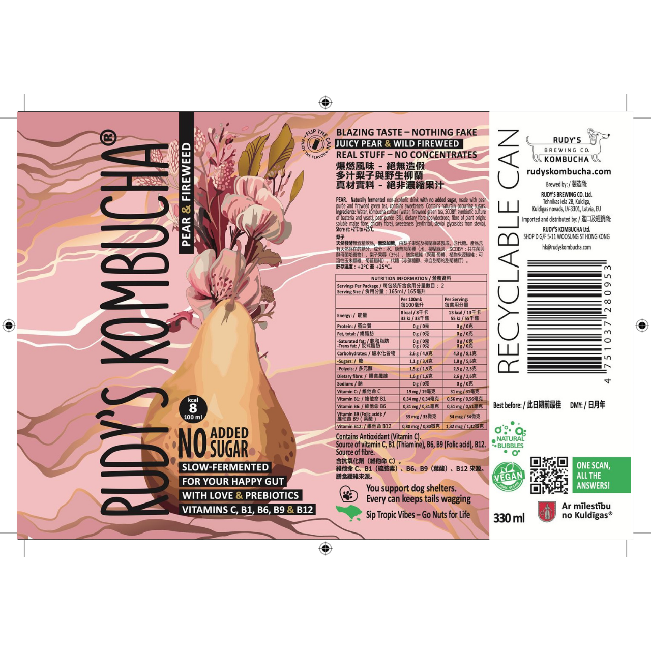 Naturally fermented fireweed tea with natural pear puree without added sugar.